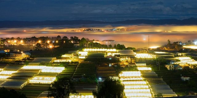 Địa điểm ngắm cảnh mê hồn này nằm tại đoạn đường Hùng Vương nối giữa tỉnh lộ 732 Đà Lạt đi Nhà Trang. Hình ảnh sáng rực của đèn điện được thắp lên vào buổi tối để trồng rau, trồng hoa là một hình ảnh độc đáo tại thành phố Đà Lạt. Từ đây bạn cũng có thể chiêm ngưỡng làng hoa Thái Phiên được thắp sáng lung linh cả một khu vực rộng lớn vô cùng ấn tượng.